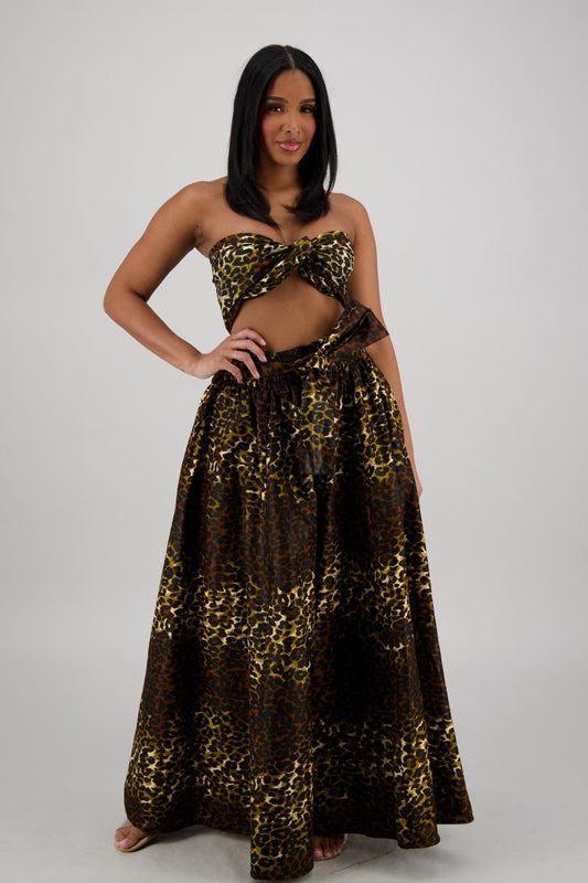 Brown-Gold Leopard Wide-Leg Palazzo Pants 61-275