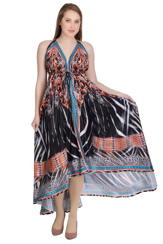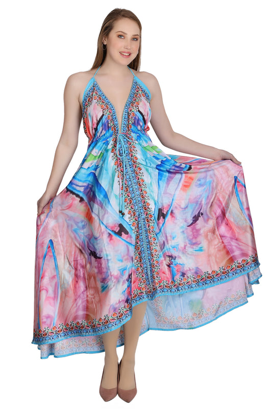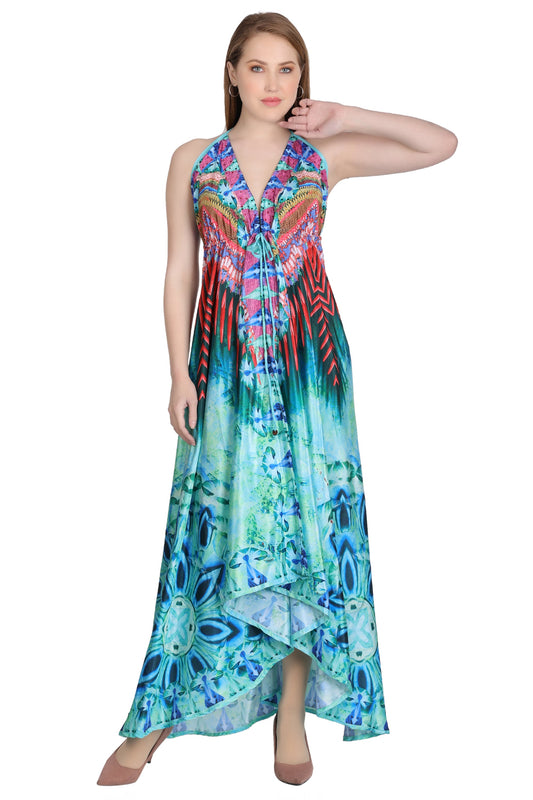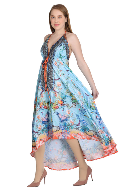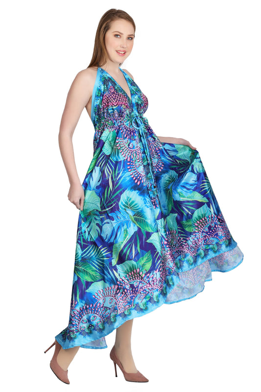 Short Silk Tropical Print Spaghetti Strap Dress PD-97131