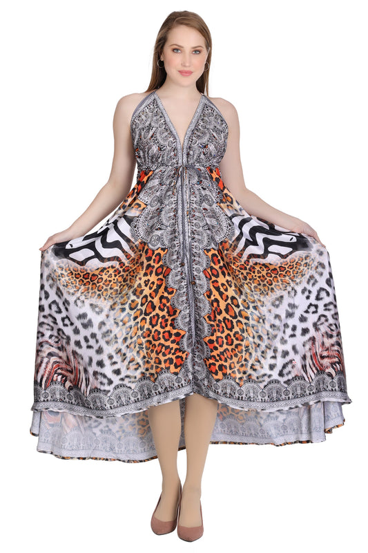 Short Silk Animal Print Spaghetti Strap Dress PD-97123