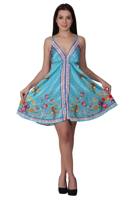 Short Silk Floral Print Spaghetti Strap Dress PD-97174