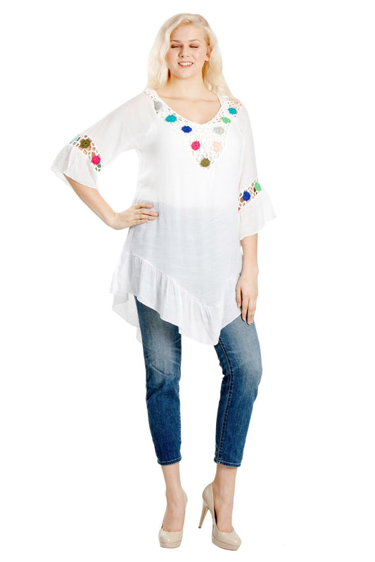3/4 Sleeve Colorful Crotchet Beach Cover-Up YD976