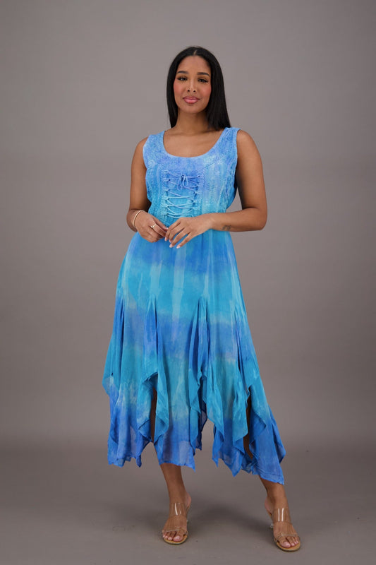 Boho Chic Embroidered Handkerchief Hem Dress TD-851