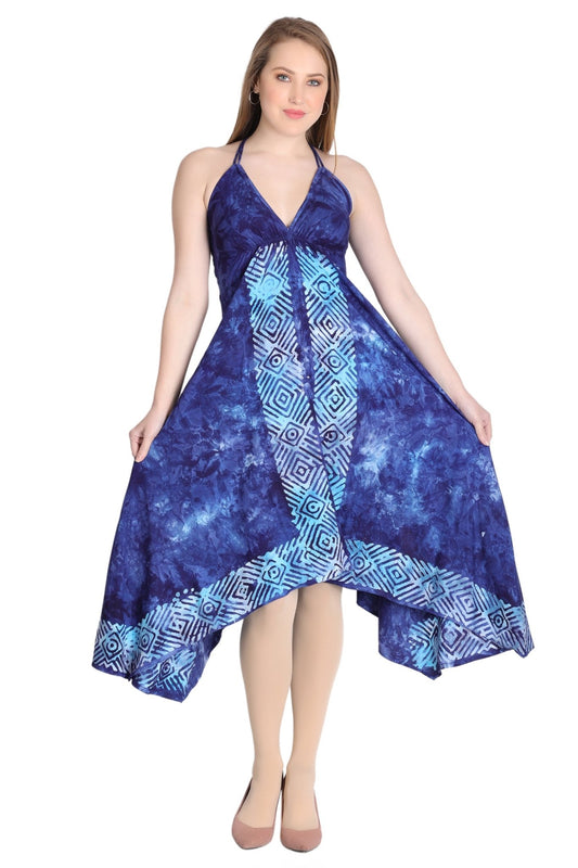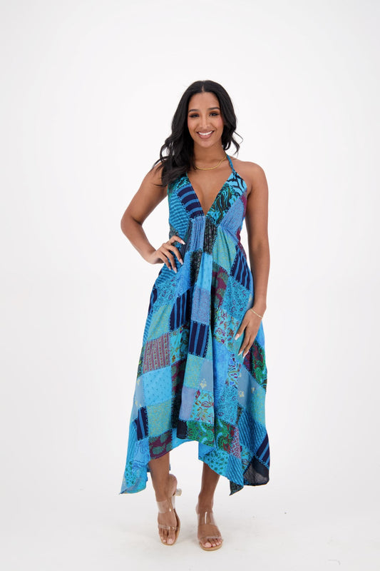 Halter Top Elastic Back Patchwork Middy Dress PAT-3277