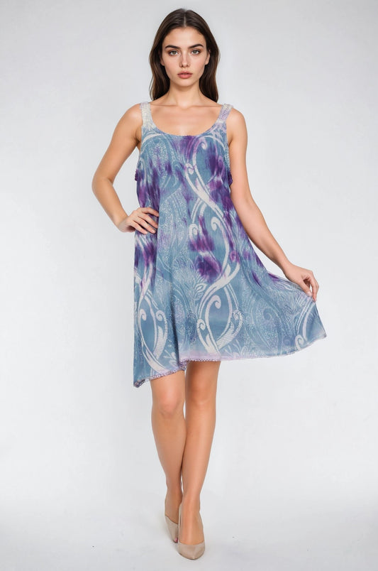 Mid Length Tie Dye Spaghetti Strap Dress SPD75