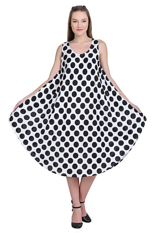 Sleeveless Wide Strap Polka Dot Umbrella Dress