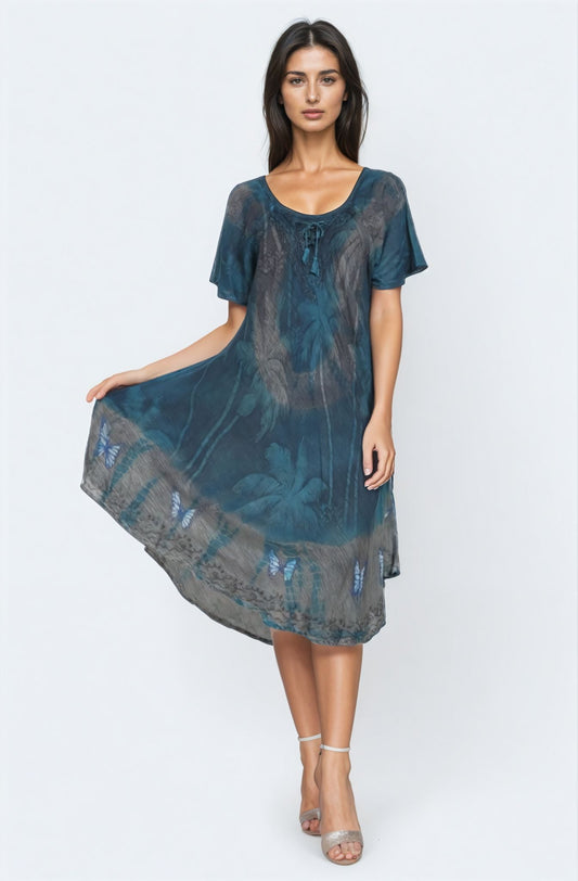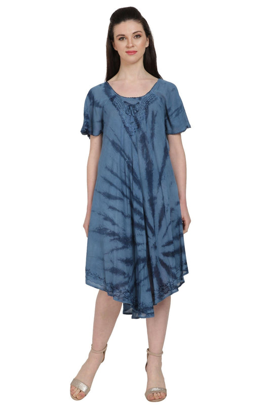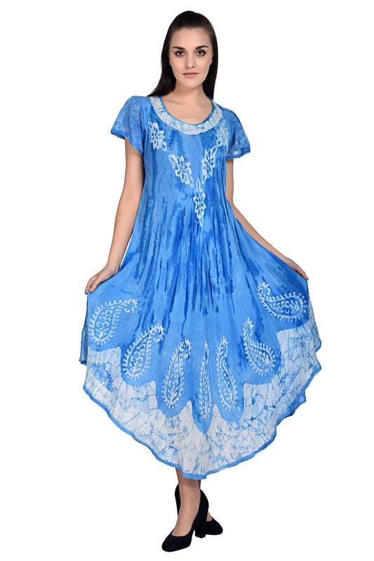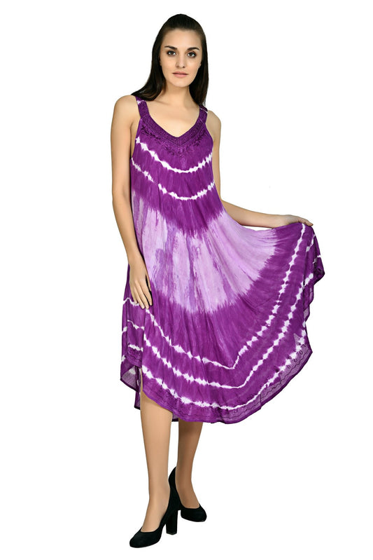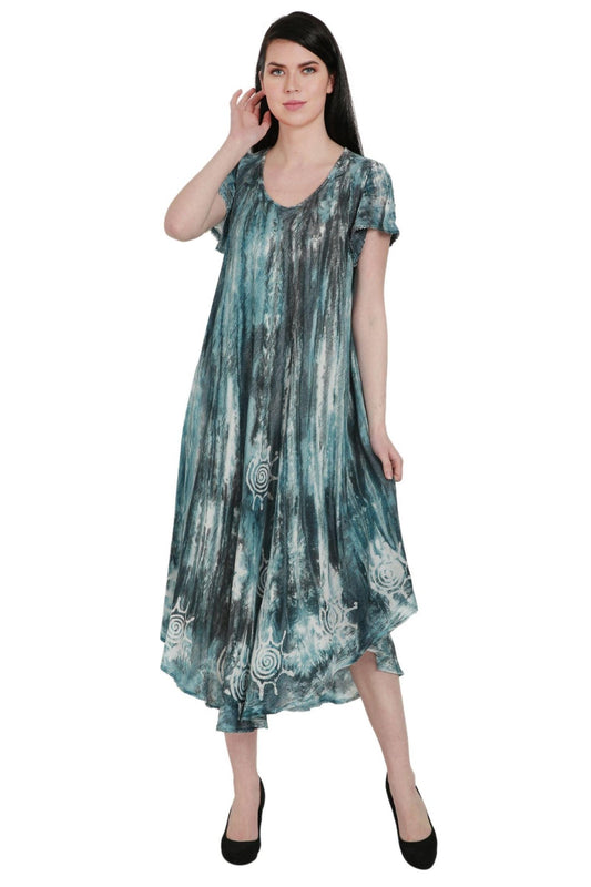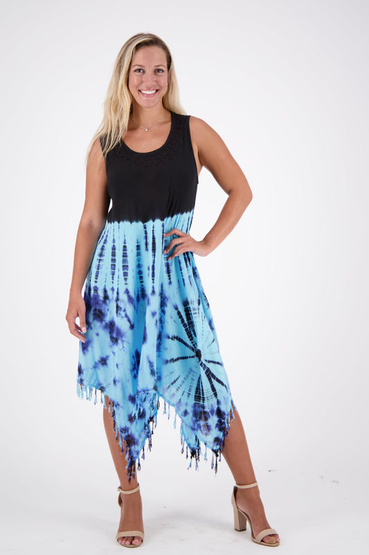 • Block Print Beach Tie Dye Umbrella Dress UD36-2322