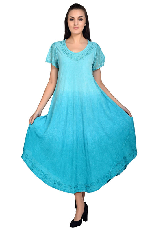 • Acid Wash Cap Sleeve Umbrella Dress 19312