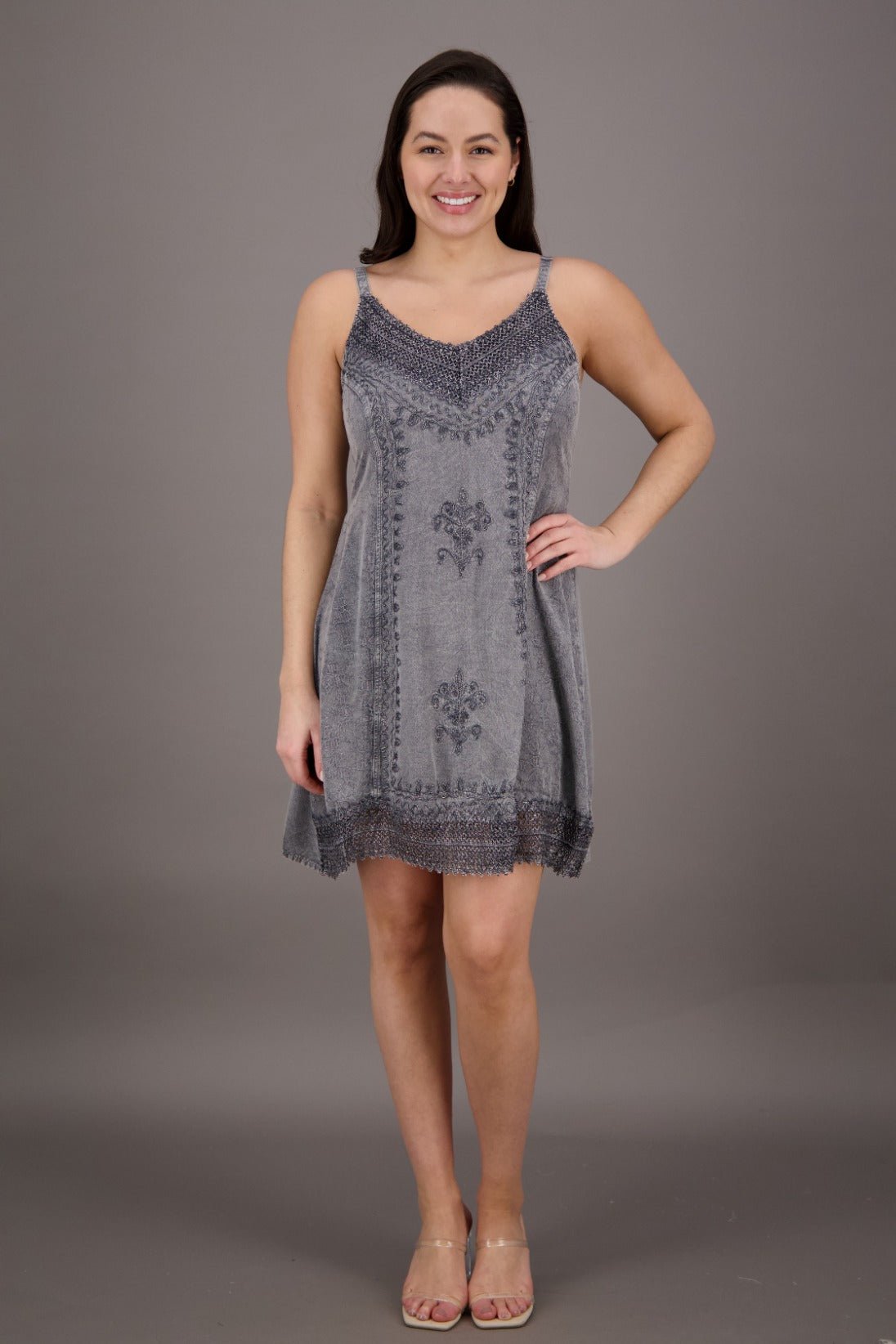 Embroidered Mid-Length Acid Wash Renaissance Dress (S/M-1X/2X) 161112