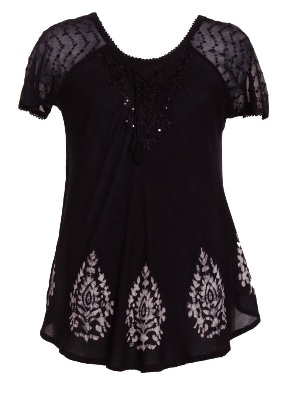 Batik Block Print Soli Dye Cap Sleeve Blouse 18717