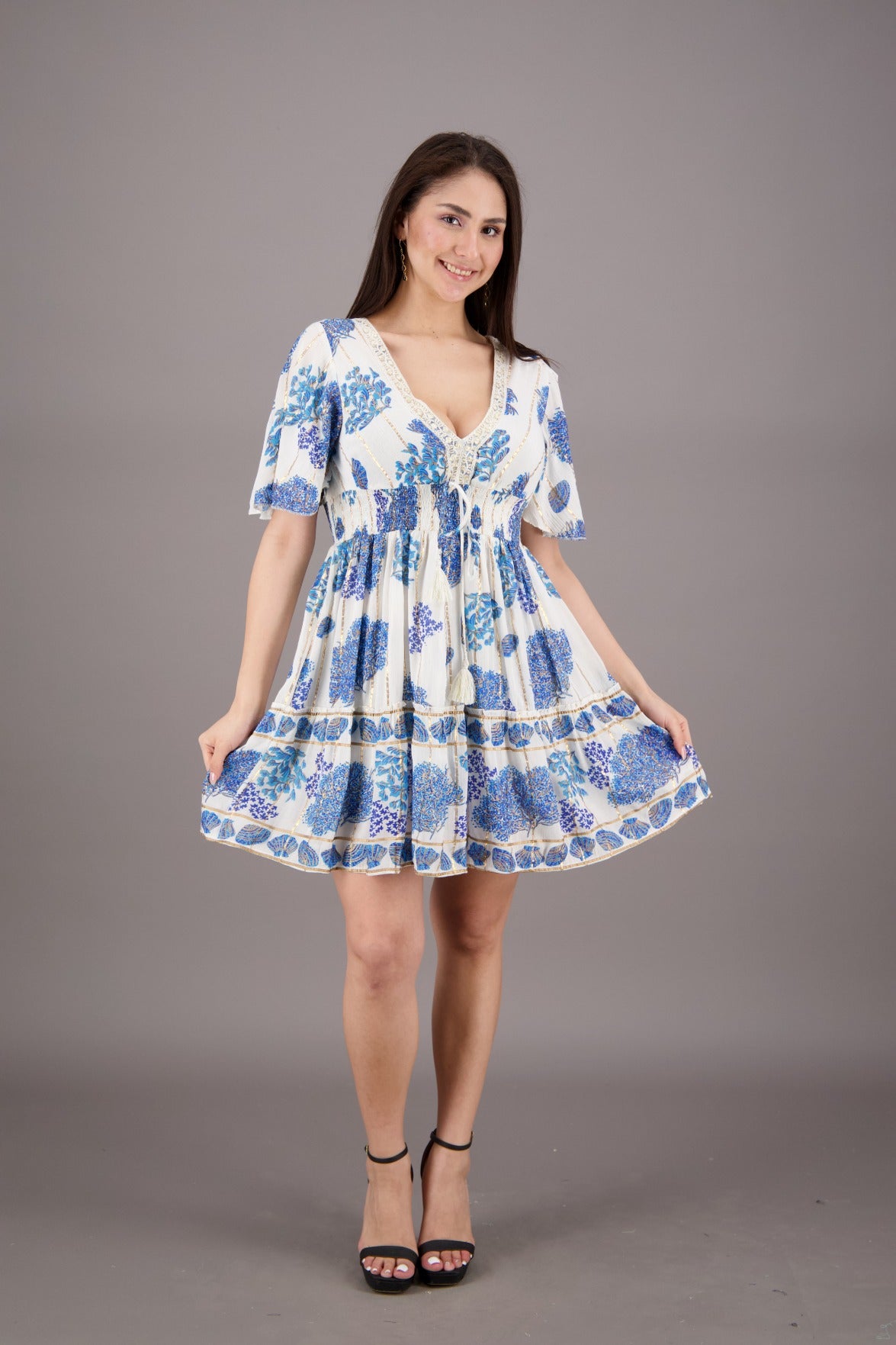 A lot of our products are free size, also known as one size fits all or OSFA. Our products are designed and draped to fit across a wide range of body types. The main advantage of free size clothing is that it can be worn by a wide range of people without the need for sizing or fitting. This can be especially convenient for people who are between sizes or who have difficulty finding clothing that fits well. However, the fit of free size clothing may not be as precise or tailored as clothing that is made in specific sizes. Additionally, because it is designed to fit a wide range of body types, it may not flatter every body shape equally. Overall, free size clothing can be a useful option for people who want clothing that is easy to wear and fits a variety of body types, but it may not be the best choice for those who want a more precise or tailored fit.