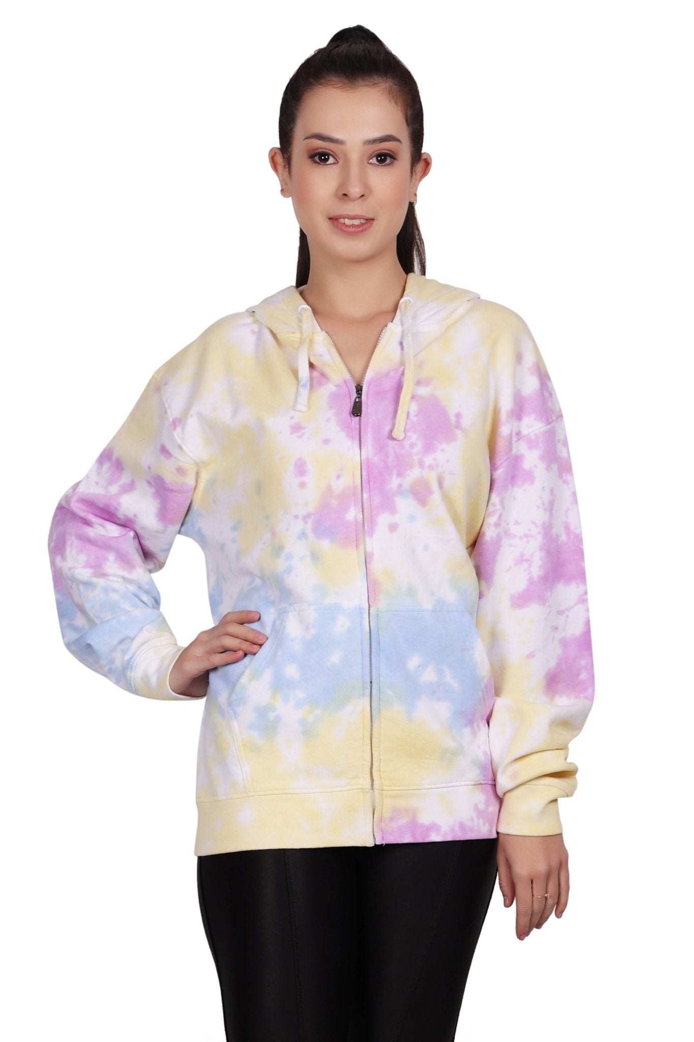 Unisex Zip Up Tie Dye Hoodie Comfortable Activewear 9604